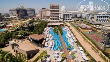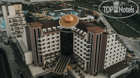 Отель и территория. Отель состоит из двух корпусов: корпус A и корпус В, в первом корпусе находится ресепшн, SPA, магазины сувениров, ночная дискотека (работает с 24.00 до 04.00), кофейня, платная и бесплатная кондитерская, Лобби-бар, видеозал, конференц-зал, детские игровые автоматы, место для хранения чемоданов и др. Во втором корпусе В находятся в основном номера, а внизу основной ресторан с уличной верандой. Как я понял (могу ошибаться) в корпусе «А» стандартные номера и какая-то часть номеров с джакузи, а номера с террасой и джакузи находятся только в корпусе «B», все они с видом на море. В этом же корпусе находятся семейные двухэтажные номера сьют, также есть номера с джакузи. Недалеко от входа в корпус А есть большой луна-парк, где есть аттракционы как для маленьких детей, так и для взрослых. В отеле достаточно большая территория, все объекты инфраструктуры расположены очень гармонично и максимально удобно. Территория отеля утопает в зелени, много красивых деревьев, цветов и пальм. В центре находится большой амфитеатр, для дневных и вечерних развлекательных шоу, поле для мини-футбола с искусственным травяным покрытием, стол для пинг-понга, площадка для большого тенниса, волейбольная площадка (находится на пляже), детская площадка, отдельный детский клуб. В отеле безупречная чистота, нет никаких бумажек, бычков, мусора, все своевременно моется, убирается, в туалетах всегда чисто и опрятно. Персонал отеля следит за чистотой, выше всех похвал!