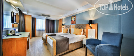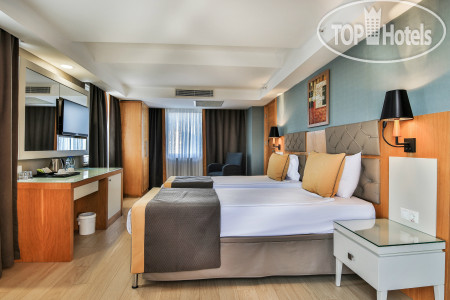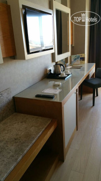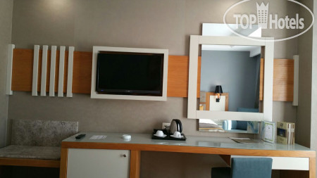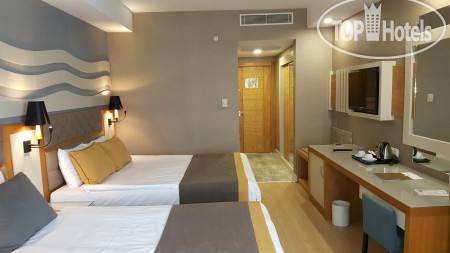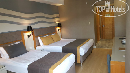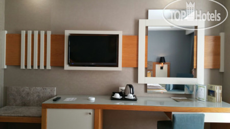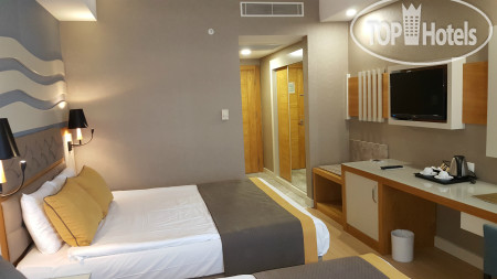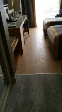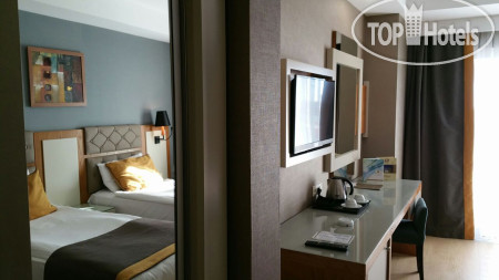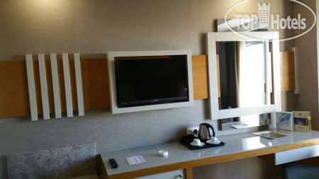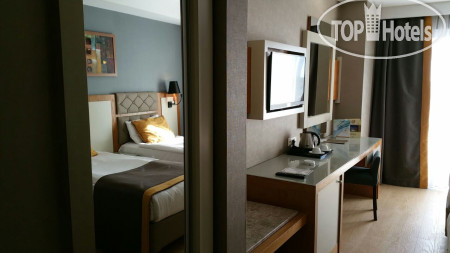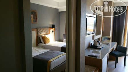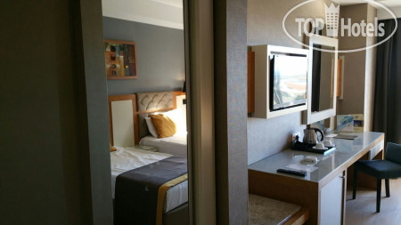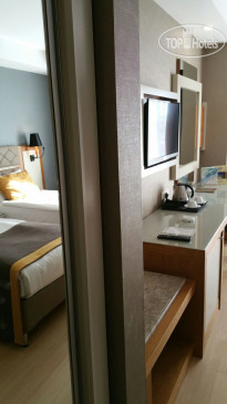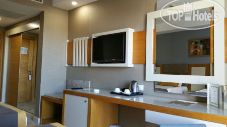 Отель находится в 15 км от аэропорта Анталья, на территории г. Лара, пригорода Антальи, поэтому трансфер от аэропорта занимает примерно 30 минут на автобусе. Приехали в 6.00 утра, на ресепшене сказали, что заселение с 12.00, но возможно и после 9.00 если будут свободные номера. К 9.00 появился замечательный человек Ибрагим, безоговорочно самый лучший сотрудник Guest Relation из всех виденных нами ранее. Очень дружелюбный, ответственный, и внимательный человек. Номера у нас должны были быть стандартные, но мы решили спросить, есть ли возможность попасть в номера выше классом с джакузи и видом на море, или хотя бы просто с видом на море. Ибрагим просто волшебник и смог сделать нам два номера в корпусе B, на 6-м и 7-м этаже с видом на море, террасой и джакузи, за что мы ему безмерно благодарны. В процессе нашего отдыха, а мы были там 10 ночей (11 дней), мы еще несколько раз встречались с Ибрагимом, он всегда приветлив и доброжелателен: интересовался как нам отдыхается, всем ли мы довольны, кроме этого, он сделал нам 2 посещения ресторанов А-ля карт и продлил нам бесплатно номера в день выезда до 17.00 без всяких доплат, выезд из отеля у нас был в 17.15. Такого уровня сервиса мы еще не встречали, несмотря, на то, что в Турции были далеко не первый раз. Ибрагим, спасибо вам большое, мы приедем к вам сами и будем рекомендовать ваш отель и лично вас всем нашим друзьям и знакомым!!!