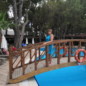 Отель находится в поселке Кунду. От аэропорта 15-20 минут. В части поселка. где находится отель мало торговых точек. - почти напротив находиться небольшой торговый центр. а до большого идти минут 15-20 в сторону Антальи. Можно , конечно доехать на автобусе. но это будет дороговато. карта стоит 3 доллара - это 2 поездки- туда и обратно, если планируете несколько остановок. соответственно надо еще брать карты. Что поразило в этом районе - это вечером сидят прямо на тротуаре женщины с маленькими детьми (местные, может цыгане) и якобы продают бумажные платочки, какие-то бусы, а по факту дети просят деньги(не навязчиво)- Раньше нигде такого не видели. Приехали в отель мы ночью-в 3 часа. Естественно в это время нас заселять не стали, т.к. отель был полный. Отдохнули немного в холле на диванчиках. В 10 часов нам дали номер на 1 жилом этаже (1107), недалеко от лифта. вид из номера на крышу спа-центра и на соседний отель, частично на море. Номер тихий. Территория отеля небольшая в ширину метров 60, в длину около 400 метров. первая береговая, но от отеля до пляжа достаточно далеко идти. практически проходишь через всю территорию отеля. (для меня это минус) На такой небольшой территории разместились 3 бассейна. горки для взрослых. горки для детей. 2х этажный ресторан. где на первом этаже а-ля карте турецкого ресторана. а на втором. что то вроде закусочной, где можно посидеть до 23 часов. (ужин в основном ресторане заканчивается в 21.00), 3 бара, амфитеатр, детская комната. площадка для минигольфа. футбольное поле. Пляж достаточно большой. чистый, песчаный, большой пирс с баром. вход в море хороший. После 12 часов по пляжу ходят официанты разносят пиццу арбузы. пончики. напитки. Приезжает тележка с мороженым (фабричным). Мороженое в рожке есть постоянно в баре. где делают вафли и тортильи и тако. Питание в отеле отличное. большой выбор на завтрак и на ужин. в обед выбор в основном ресторане маленький. но много и не нужно т.к. большинство отдыхающих в отеле европейцы (Голландия. Германия Великобритания) предпочитают обедать в баре на пляже где готовят бургеры. наггетсы и картошку фри. Много фруктов, в сентябре были арбузы, дыни, ананас, киви, виноград 3х видов, апельсины, груши, яблоки, инжир. Номера в отеле стандартные. убирают ежедневно. чисто. полотенца меняют тоже каждый день. в отеле есть русскоговорящий менеджер Ибрагим. который подскажет ответ по любому вопросу, как и в отеле, так и за его территорией. (например куда можно съездить, на чем), запишет в а-ля карте. в течении отдыха не раз подойдет к тебе узнать какие есть проблемы-оперативно их решит. Пляжные полотенца выдают в спа-центре с 08-18 часов. Воду без газа в бутылках , айран можно взять в любом баре в холодильнике. Интересная анимация. В последний день отдыха нам в номер принесли комплемент от отеля - бутылка шампанского в ведерке со льдом и тарелку фруктов- очень приятно.:).